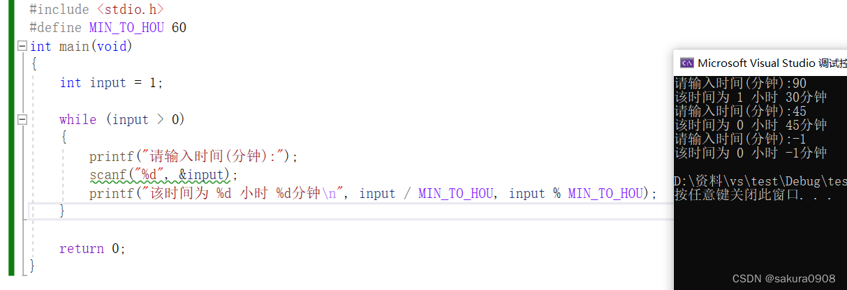printf("该时间为 %d 小时 %d分钟\n", input / MIN_TO_HOU, input % MIN_TO_HOU);