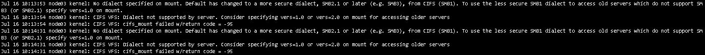 挂载时未指定smb版本。默认值已从cifs(smb1)更改为更安全的smb2.1或更高版本(例如smb3)。使用不太安全的smb1版本访问不支持smb3(或smb2.1)的旧版本,在安装时指定vers=1.0。