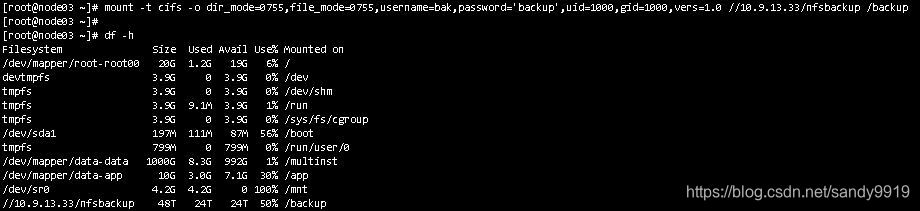 mount -t cifs -o dir_mode=0755,file_mode=0755,username=bak,password='backup',uid=500,gid=500 //10.9.13.33/nfsbackup /backup