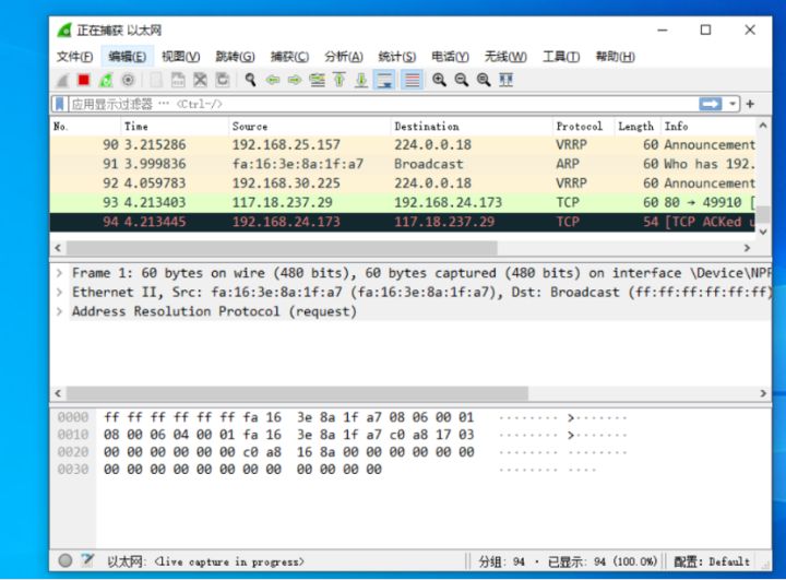 为了对比TLS明文分析效果,先通过Wireshark工具,抓取TLS密文数据包。