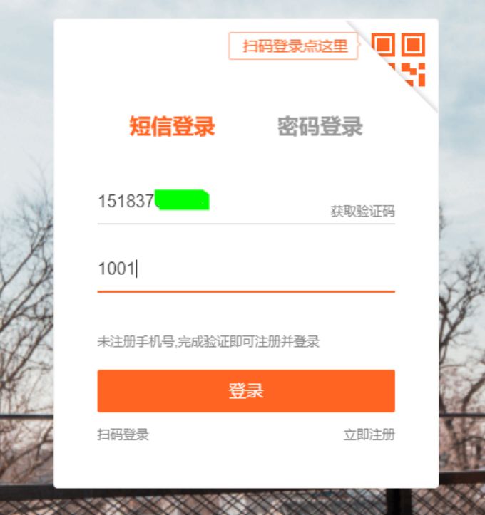 在登录页面中,输入自己注册的手机号,并通过短信验证码进行登录。如下图所示。