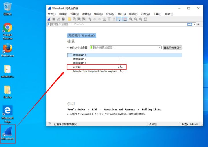 关闭浏览器页面,停止wireshark抓包。点击“wireshark”上方红框按钮,停止抓包。