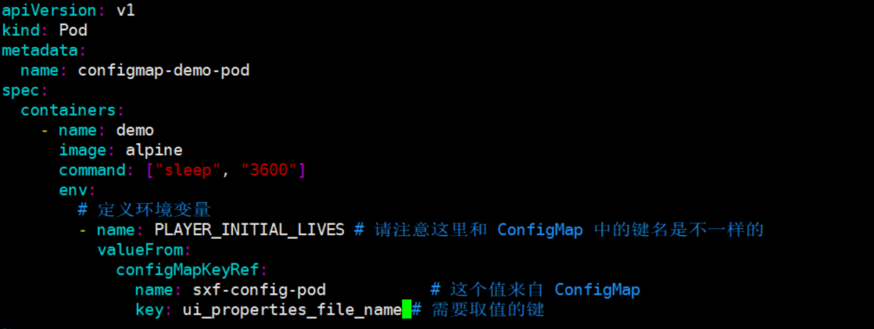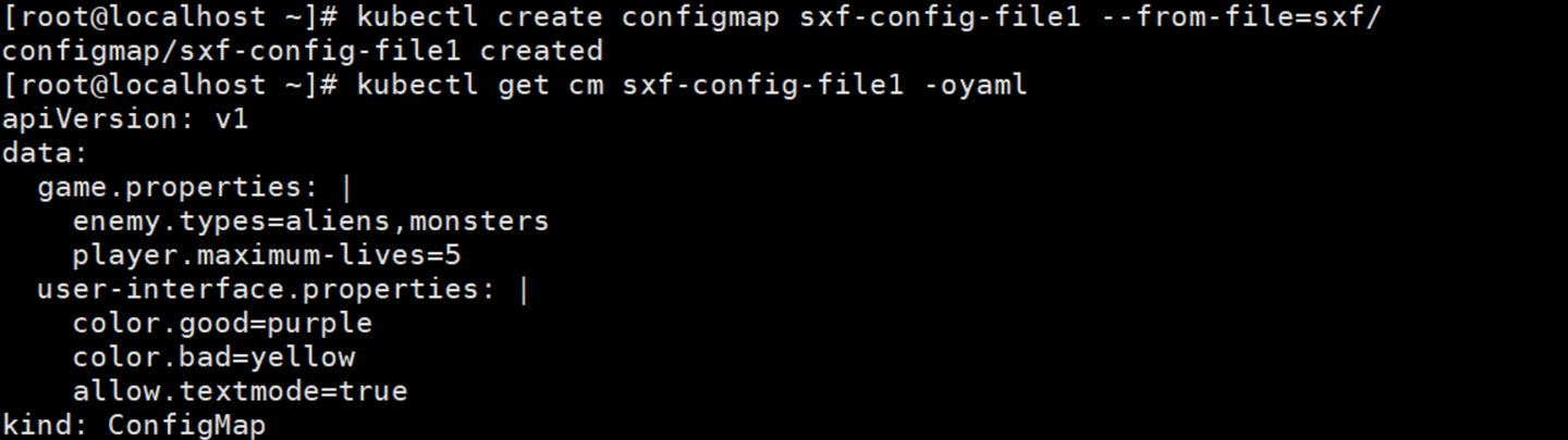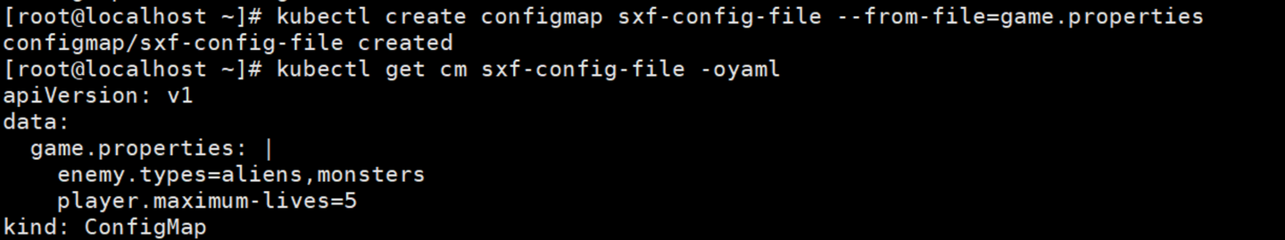 这个命令会创建一个名为sxf-config-file的ConfigMap,其中包含1个文件:game.properties。