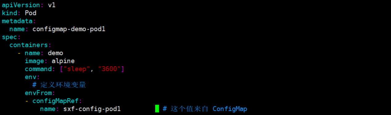 上述演示中提到的valueFrom通常用于将ConfigMap中的单个Key设置为环境变量。但在实际使用中,更常见的是将ConfigMap中的所有数据都设置为环境变量。为此,可以使用envFrom参数来实现。在YAML文件中,需要将envFrom参数放在容器的spec字段中,并将ConfigMap的名称指定为参数。这样,就可以将ConfigMap中的所有数据都转换为环境变量,并在Pod中的容器中使用。使用envFrom参数可以方便地管理ConfigMap中的所有数据,并将它们传递给Pod中的容器,以便进行相应的配置。