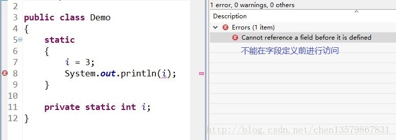 静态代码块对于定义在它之后的静态变量,可以赋值,但是不能访问.