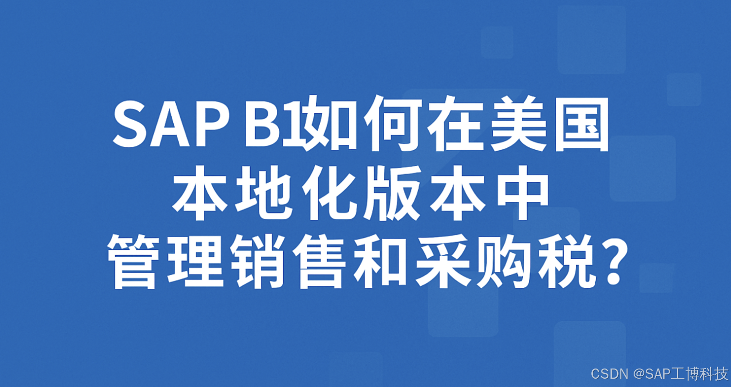 作为SAP官方授权金牌伙伴工博科技,为大量出海企业解决过出海财税落地的方案解决。今天工博小编,为大家整理了一份SAP ERP B1如何在美国本地化版本中管理销售和采购税的操作指南。