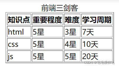 <caption>前端三剑客</caption>