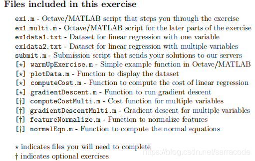 ex1.pdf是对作业的说明文档,其中说明了哪些文件是需要自己手动添加的函数。