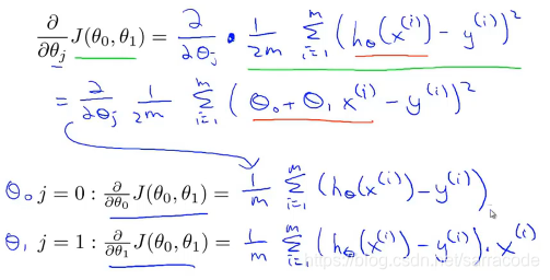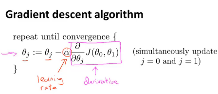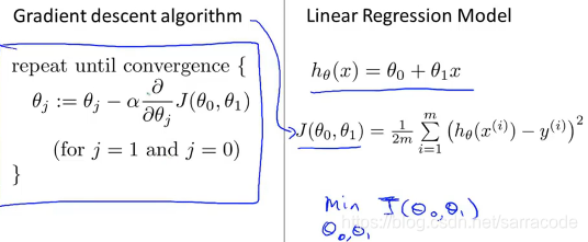 接下来我们将梯度下降算法和平方差代价函数相结合,得出线性回归算法。