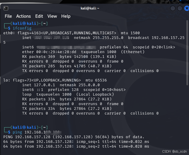 首先可以在物理机或者虚拟机kali linux中利用ipconfig/all或者ifconfig指令获得ip地址随后利用ping 加ip地址测试网络连通性