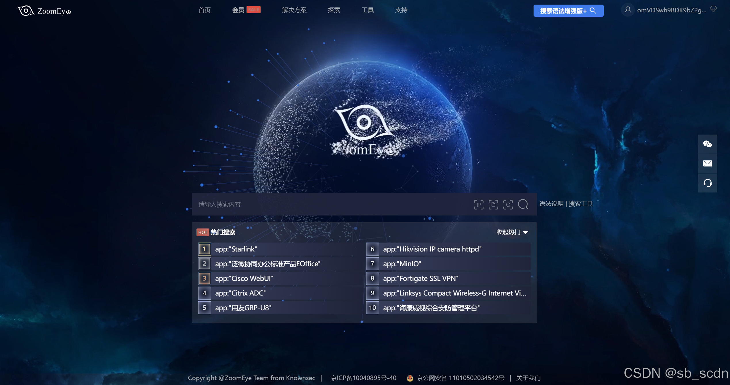 想扫描一个ip地址子域名就可以使用zoom eye。