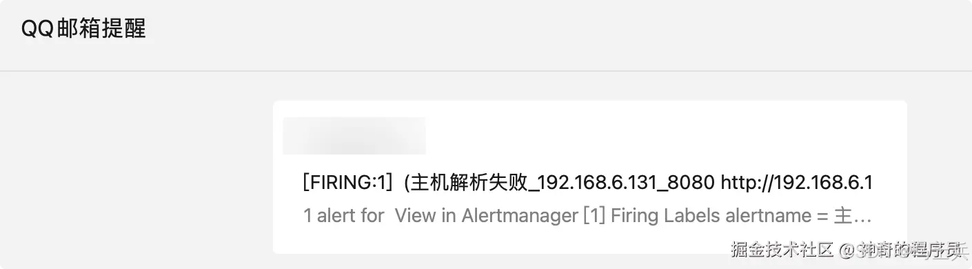此时,将你的内网服务关闭,1分钟后,你将成功收到告警邮件。
