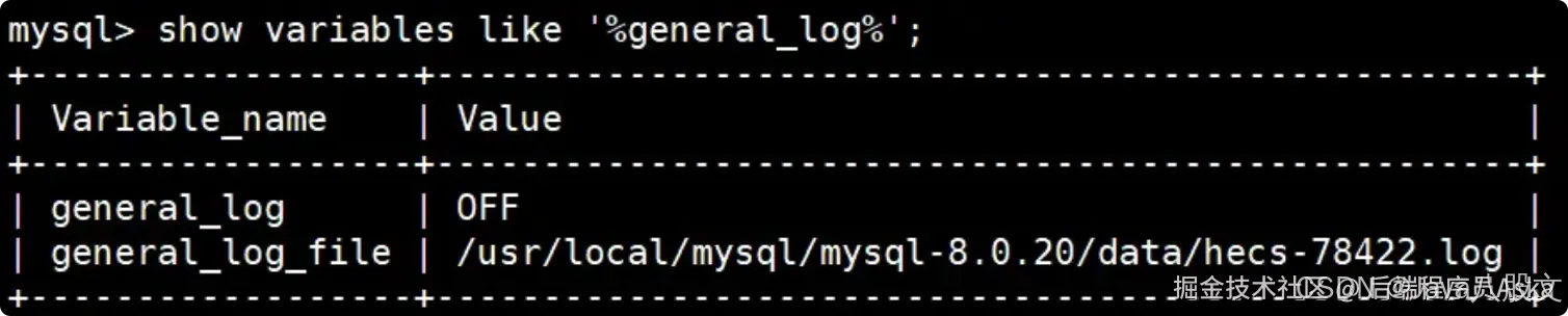 general_log = on general_log_file = /usr/local/mysql/mysql-8.0.20/data/hecs-78422.log