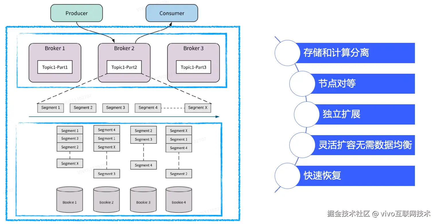 Pulsar是新一代的云原生消息中间件,由Apache软件基金会孵化和开源。它的设计目的是为了满足现代数据处理和计算应用程序对可扩展性、可靠性和高性能的需求,具备存储与计算分离、节点对等、独立扩展、实时均衡、节点故障快速恢复等特性。