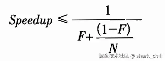 有些问题确实是增加更多的资源,执行的速度理论上也就会越快,这也就是著名的Amadhl定律,其理论的对应公式如下,对应语义为: