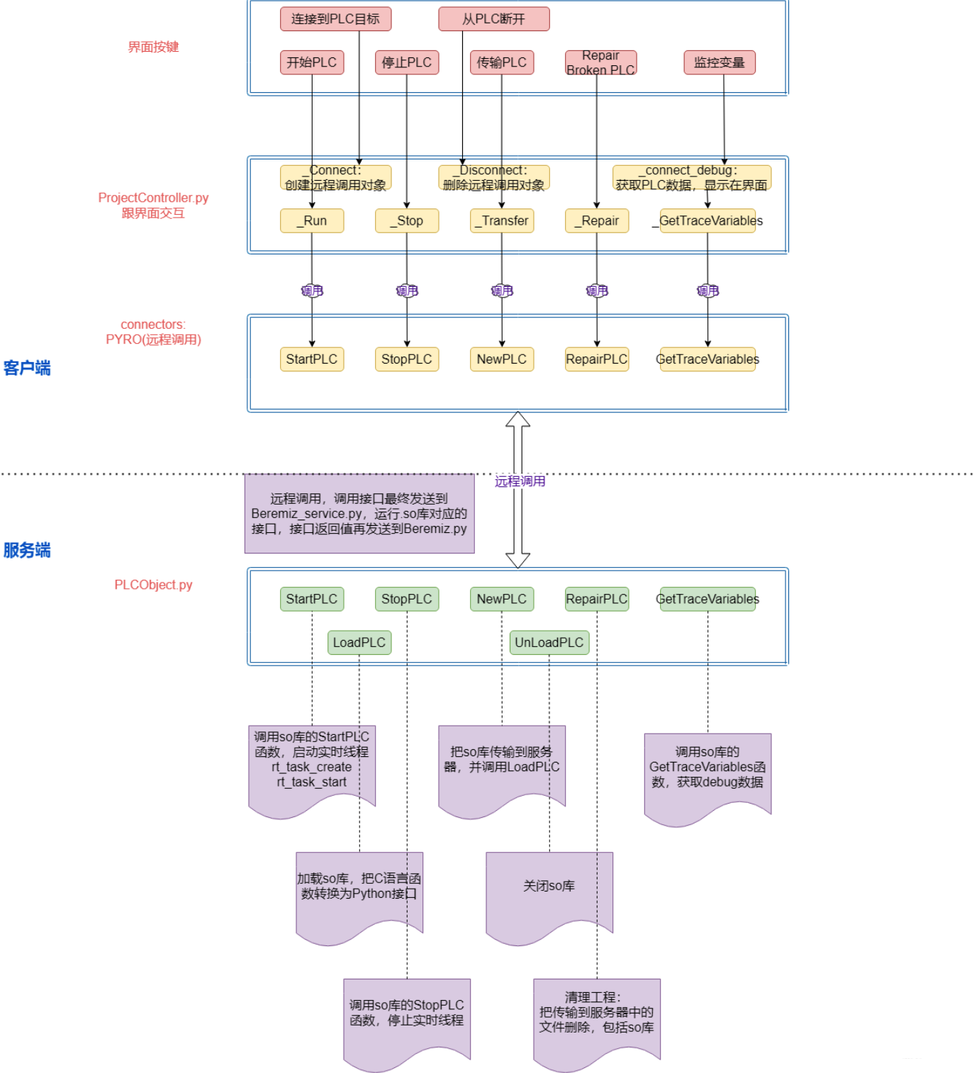 - 3.分布式系统调用:通过TCP连接和数据序列化,Beremiz实现了远程调用的功能,使工程师能够轻松调用其他服务器上的函数和方法,进一步提升了系统的扩展性。