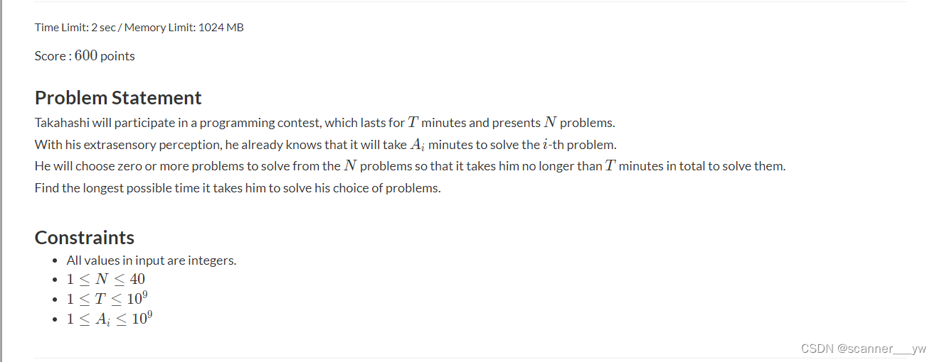 很明显,直接状压枚举会超时,而直接dp会暴内存,因此我们考虑综合一下,对于前面一半我们采用状压存储所枚举的所有值,放入vector中,然后排序,对于后半部分的值,我们考虑直接状压枚举,然后跟vector中的值去比较能否二分到一个t-tmp的值。