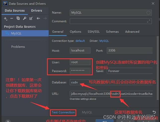 数据库连接URL(jdbc:mysql://localhost:3306/你的数据库名?useUnicode=true&characterEncoding=UTF-8&serverTimezone=Asia/Shanghai)