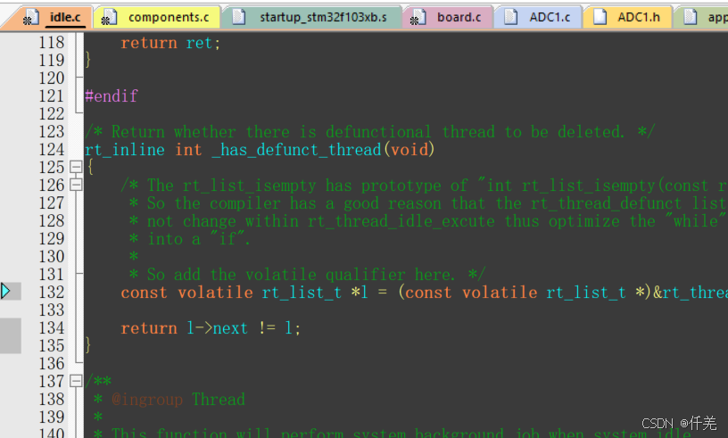 在同时添加2个线程后,仿真发现系统进入IDLE文件has defunct thread函数,线程不能执行。