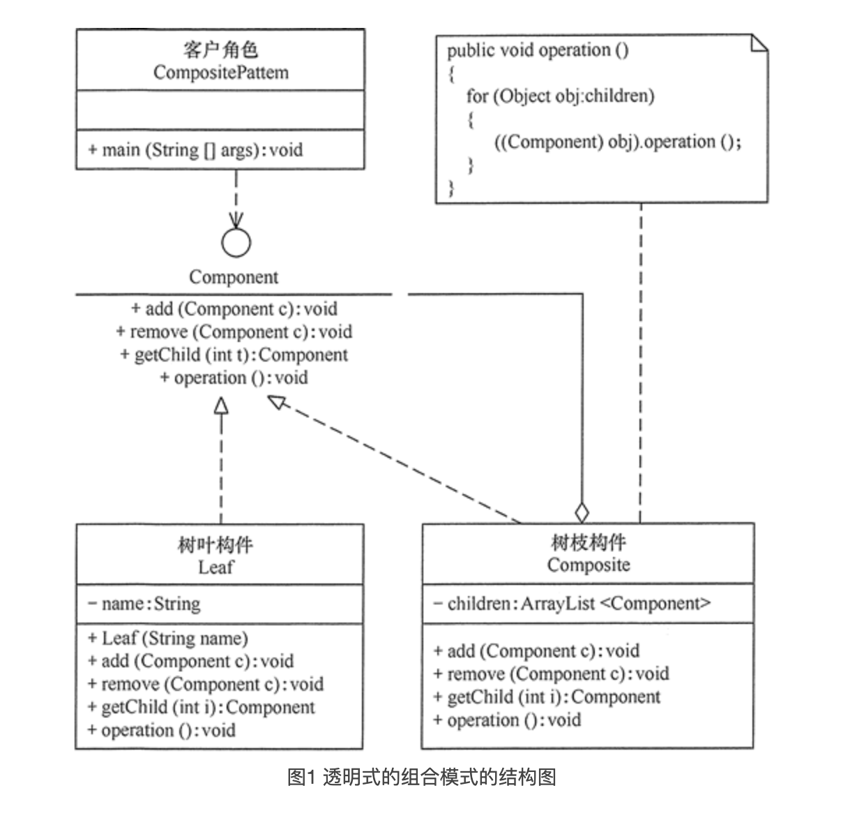 透明方式将所有对外操作都放在 Component,叶子节点也得提供这些接口,虽然它实际上不支持这些操作。