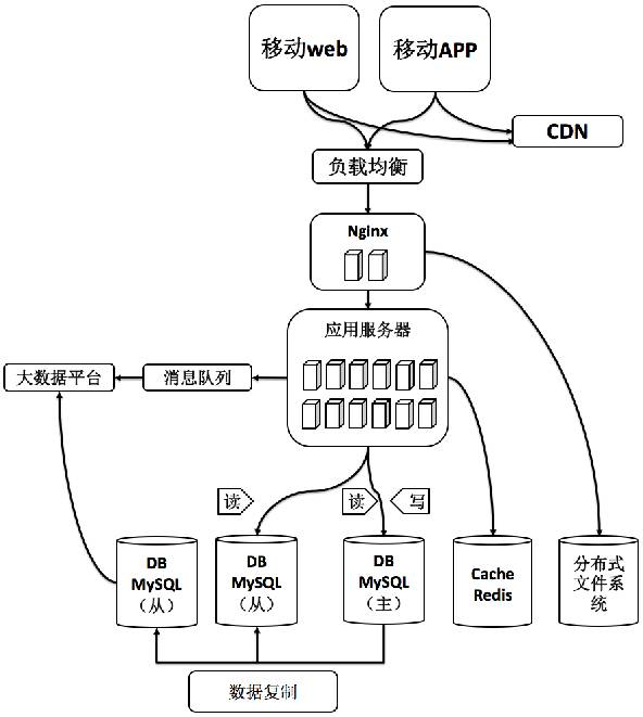 性能测试结果并不乐观,我们结合互联网领域常用技术架构模式以及自身性能瓶颈,进行了架构优化重构。