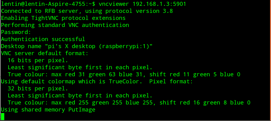 sudo vncserver :1 -geometry 1200x700 -depth 24 -pixelformat rgb565 //800x600