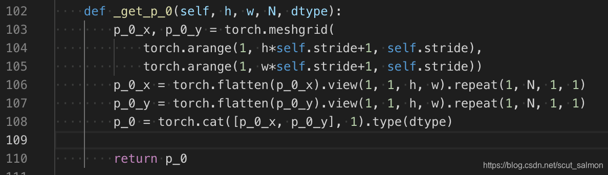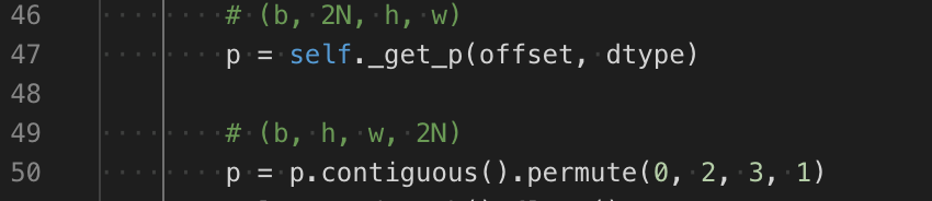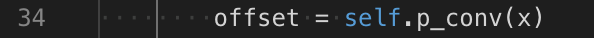 代码似乎也是按照这个流程写的,不过上面的输出结果不应该是(b*h*w*2c),而是(b*h*w* (2kernel_size*kernel_size)),因为只需要记录可变形卷积滤波器变形之后的位置,滤波器的原始尺寸是kernel_size*kernel_size,需记录x坐标和y坐标,故为2*kernel_size*kernel_size