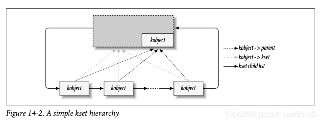 kset中的每一个kobject都是被内嵌在别的结构体之中,这个结构体可以是任意的结构体,也可能是某一个kset。kobject->parent一般情况下不是它所在的kset。