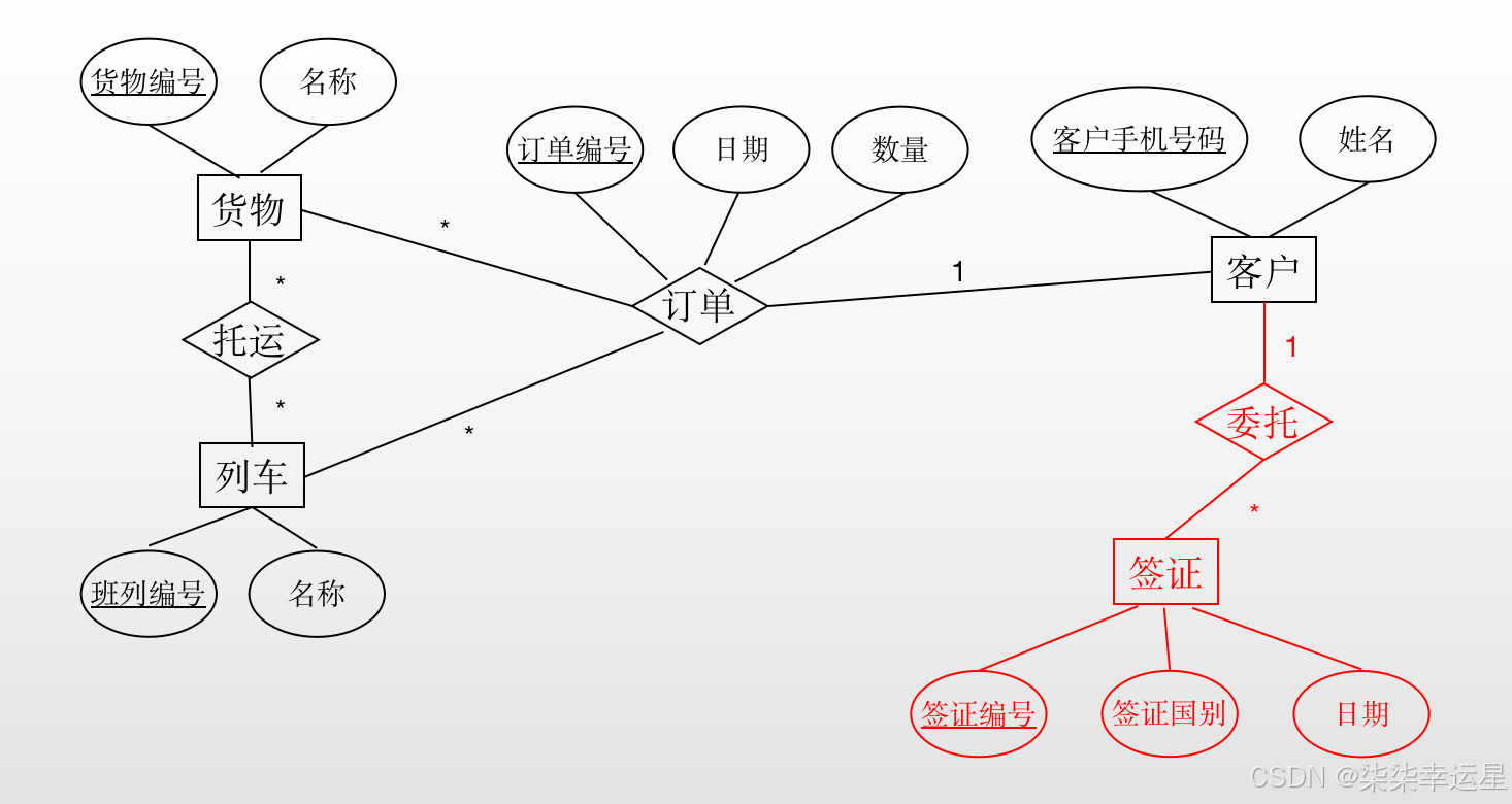 (b)班列编号; 完整性约束为:主键: 订单编号;外键:班列编号,货物编号,客户手机号码