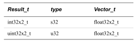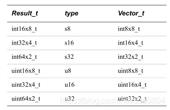 必须使用头文件arm_neon.h来使用内部函数,并为矢量操作定义C样式类型。 C类型以以下形式编写:
