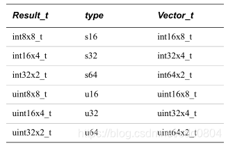 int16x4_t:这是一个包含有符号16位整数的向量。向量中有4个元素。因此,向量必须位于64位D寄存器中。