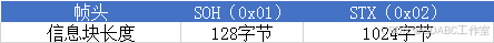 Ymodem 有两种帧格式,主要区别是信息块长度不一样。