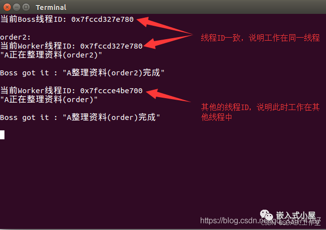 qDebug()<<"当前Boss线程ID:"<<QThread::currentThreadId()<<endl;