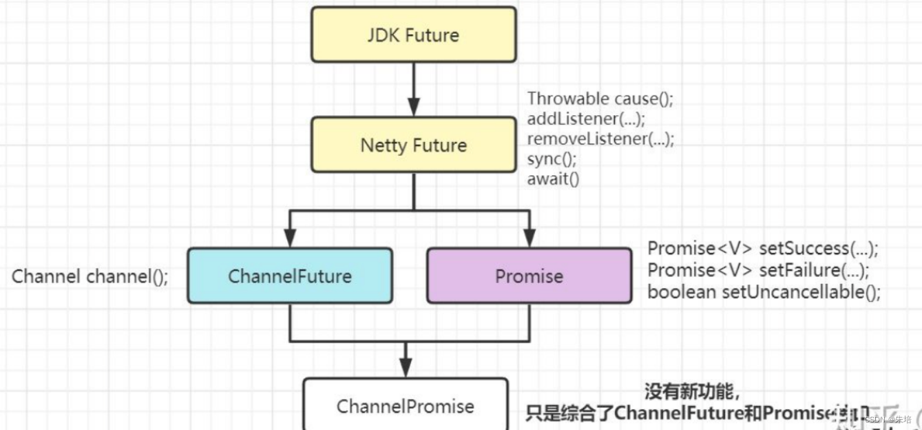 - Future接口只提供了获取返回值的get()方法,不可设置返回值。Promise接口在Future基础上,还提供了设置返回值和异常信息,并立即通知listeners。而且,一旦 setSuccess(...) 或 setFailure(...) 后,那些 await() 或 sync() 的线程就会从等待中返回。