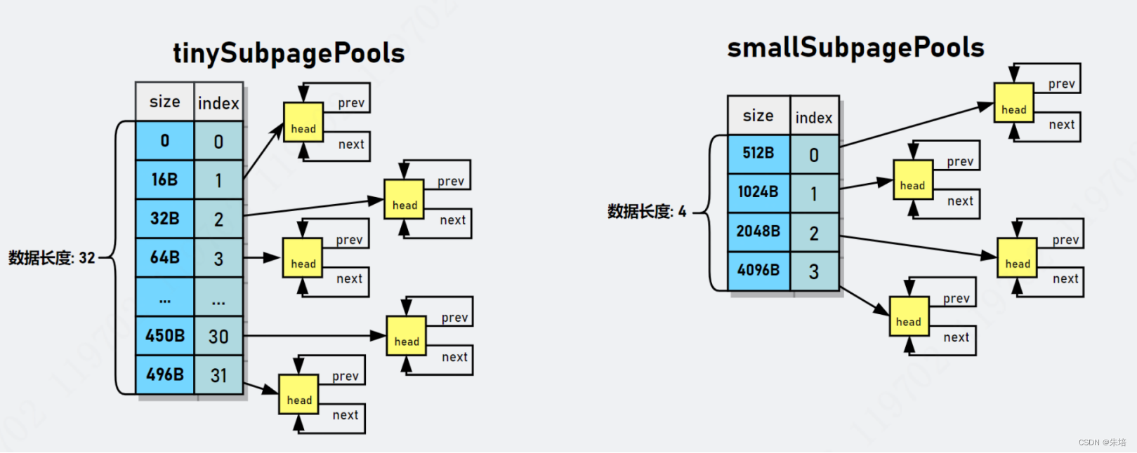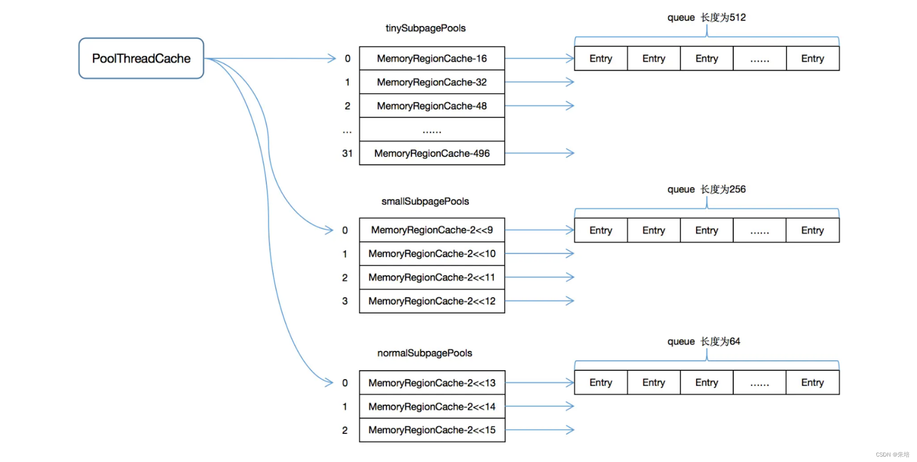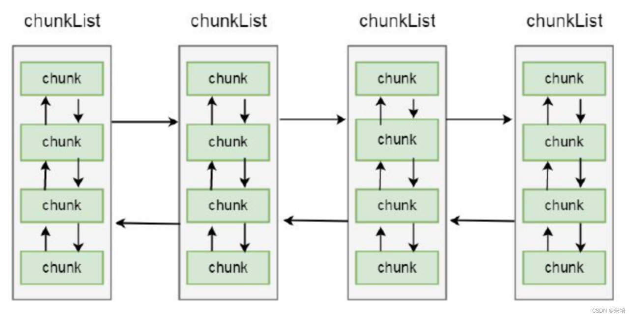 储 PoolChunk 的 6 个 PoolChunkList,他是根据内存的使用率来划分的。q000没有前驱节点,所以一旦PoolChunk使用率为0,就从PoolChunkList中移除,释放掉这部分空间,避免在高峰的时候申请过内存一直缓存到池中。