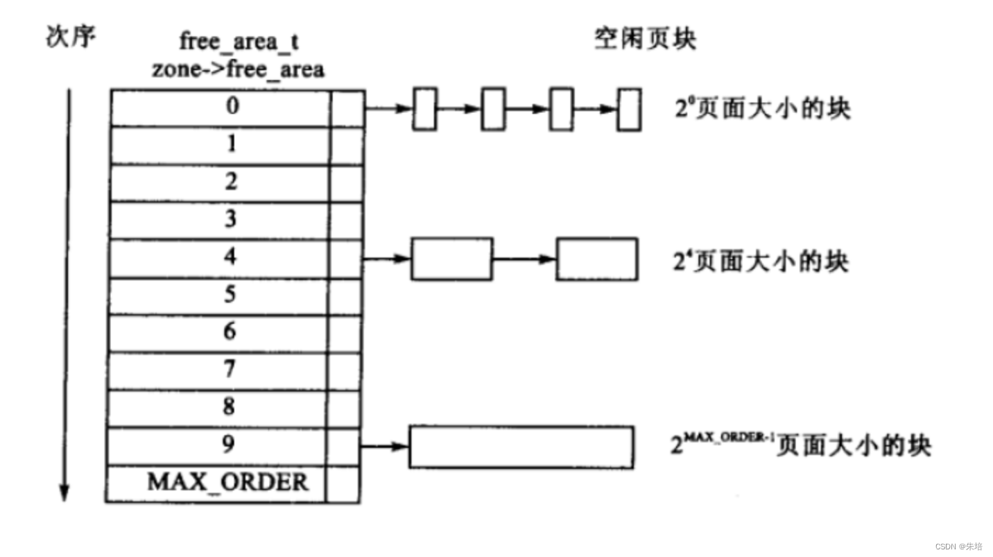 例如伙伴算法把所有的空闲页面分为10个块组,每组中块的大小是2的幂次方个页面,每一组中块的大小是相同的,且这同样大小的块形成一个链表(类似于一个hashmap里面的桶)。把内存块存放在比链接表更先进的数据结构中。这些结构常常是桶型、树型和堆型的组合或变种。一般来说,由于所选数据结构的不同,而各伙伴分配程序的工作方式是相差很大。在linux里面伙伴算法把所有的空闲页框分组成 11 个块链表,每一个块链表分别包含大小为1、2、4、8、16、32、64、128、256、512 和 1024 个连续的页框。