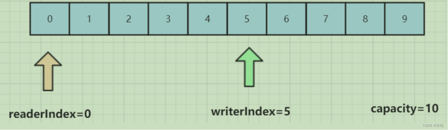 - ByteBuf 由一串字节数组构成。数组中每个字节用来存放信息。 ByteBuf 提供了两个索引,一个用于读取数据,一个用于写入数据。这两个索引通过在字节数组中移动,来定 位需要读或者写信息的位置