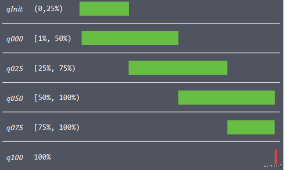 各个容量区间,PoolChunkList的额定使用率区间存在交叉,这样设计是因为如果基于一个临界值的话,当PoolChunk内存申请释放后的内存使用率在临界值上下徘徊的话,会导致在PoolChunkList链表前后来回移动