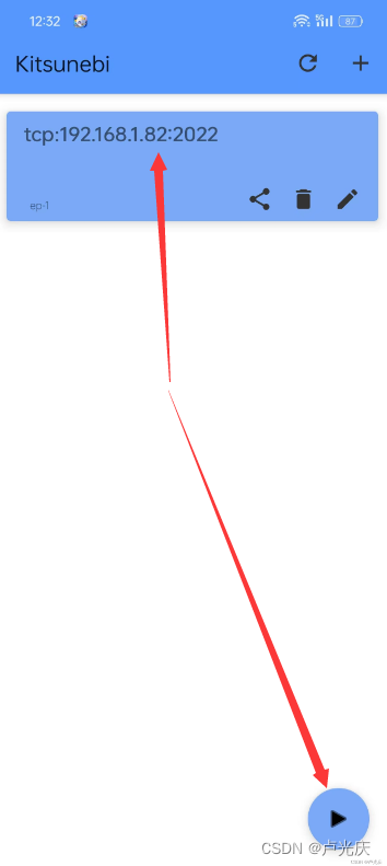 2、手机端:运行 Kitsunebi ,按下面步骤进行设置:
