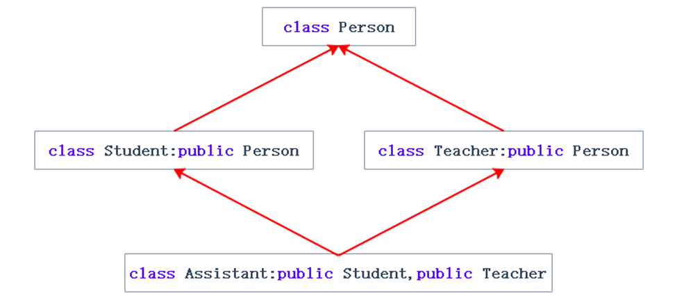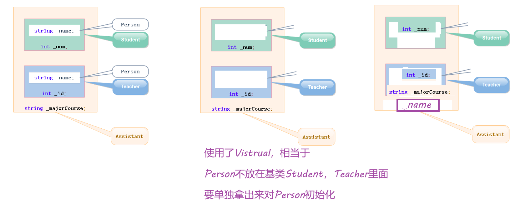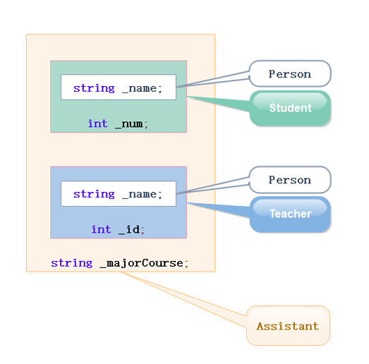 子类Assistant中会有两个Person基类中的成员,即会有2个_name