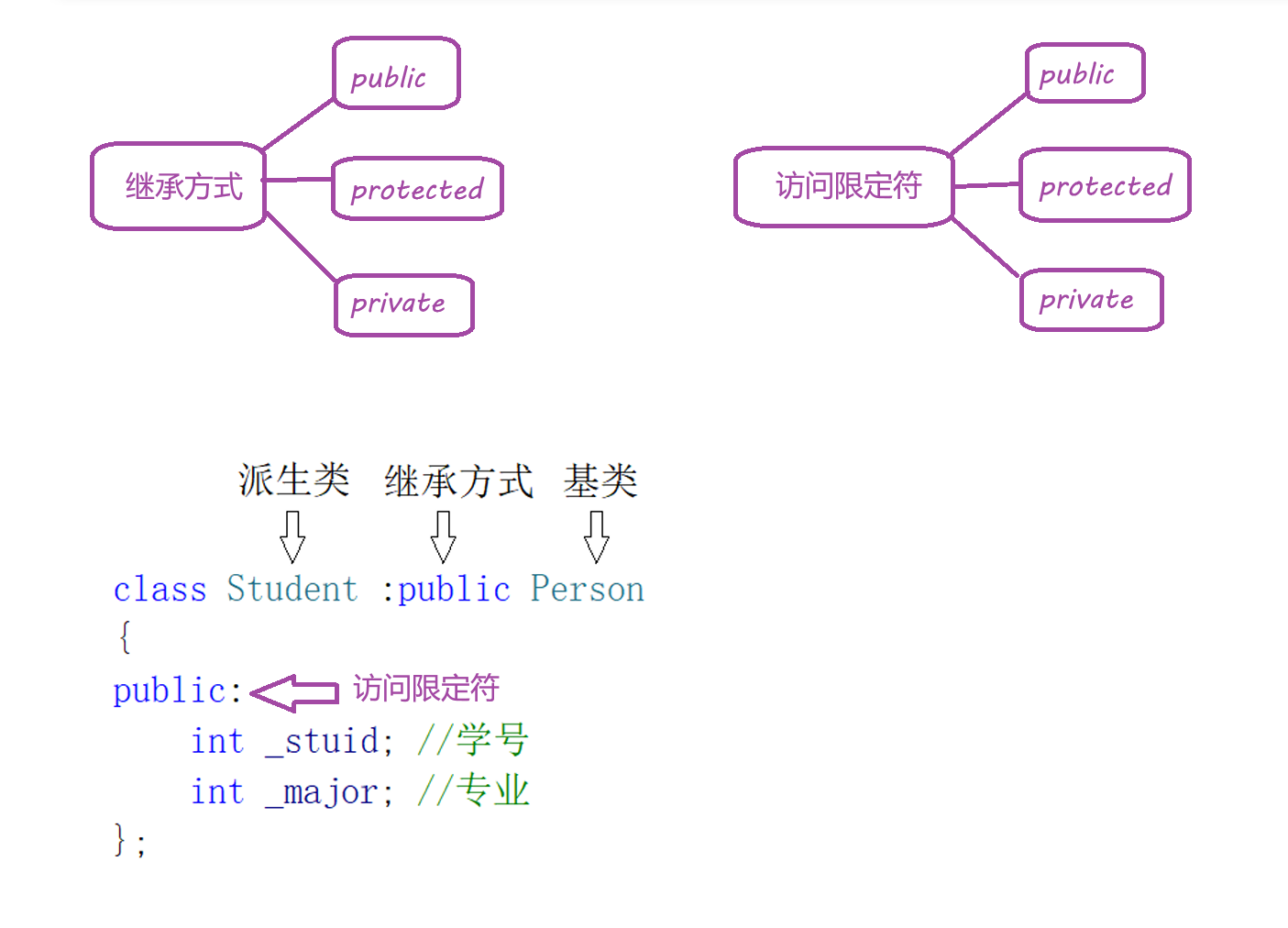 二.继承方式,决定了 子类成员 继承 父类成员的权限