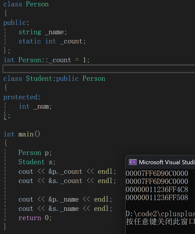 而如果是普通的非静态成员,整个继承体系会有多份变量名相同但地址不同的 同名变量