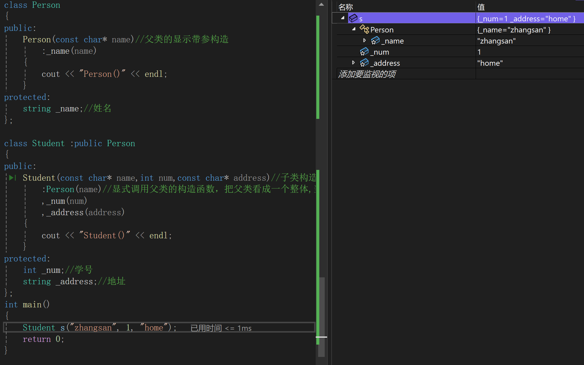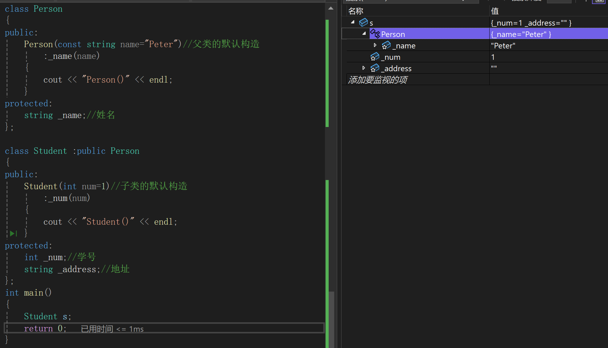 ,Student(name1,1)//调用Student基类的构造函数,但忽略对Person(name1)的初始化