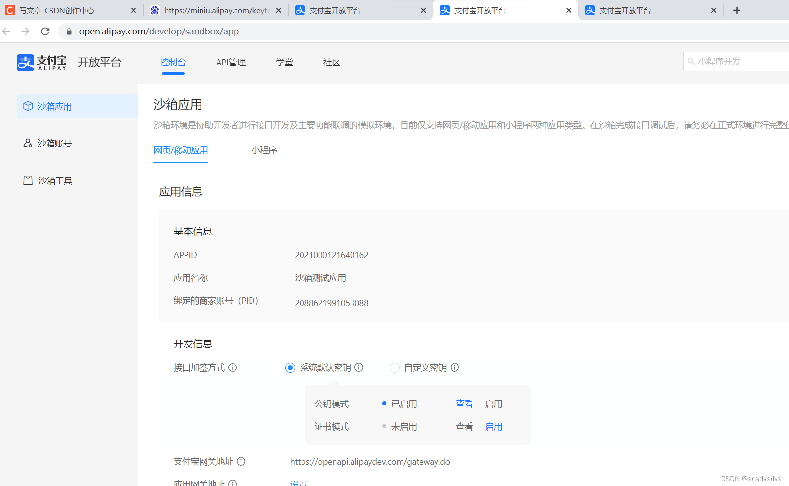 支付宝沙箱地址: