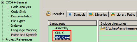 5、继续选至C/C++ General的Paths and Symbols。右侧Includes的C++项目,增加include路径。继续假设你的ndk路径是“E:\android-ndk-r6”==,如果是Android 2.2工程。