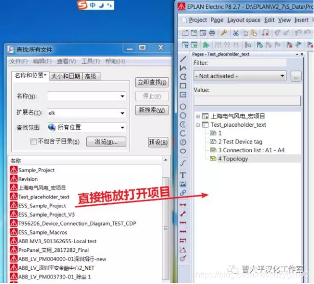 直接查找elk文件, 找到之后拖放到页导航器, 可以直接打开项目 ; 将*.slk文件拖放到页导航器, 可以直接打开符号库。
