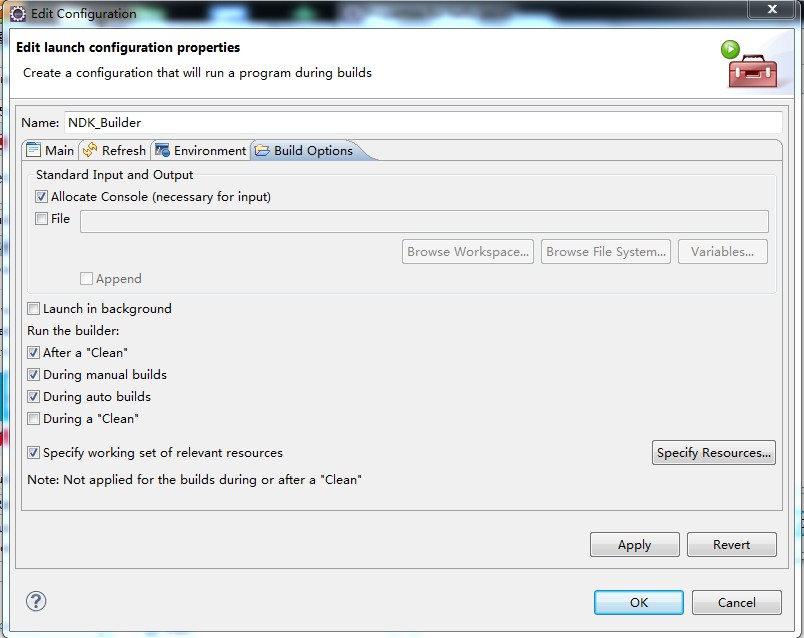 既然NDKr7来了,那就不用做Cygwin的配置了。下面是使用NDKr7在windows下配置自动编译的builders的过程,对于Linux,只需要修改ndk-build.cmd为ndk-build即可了。