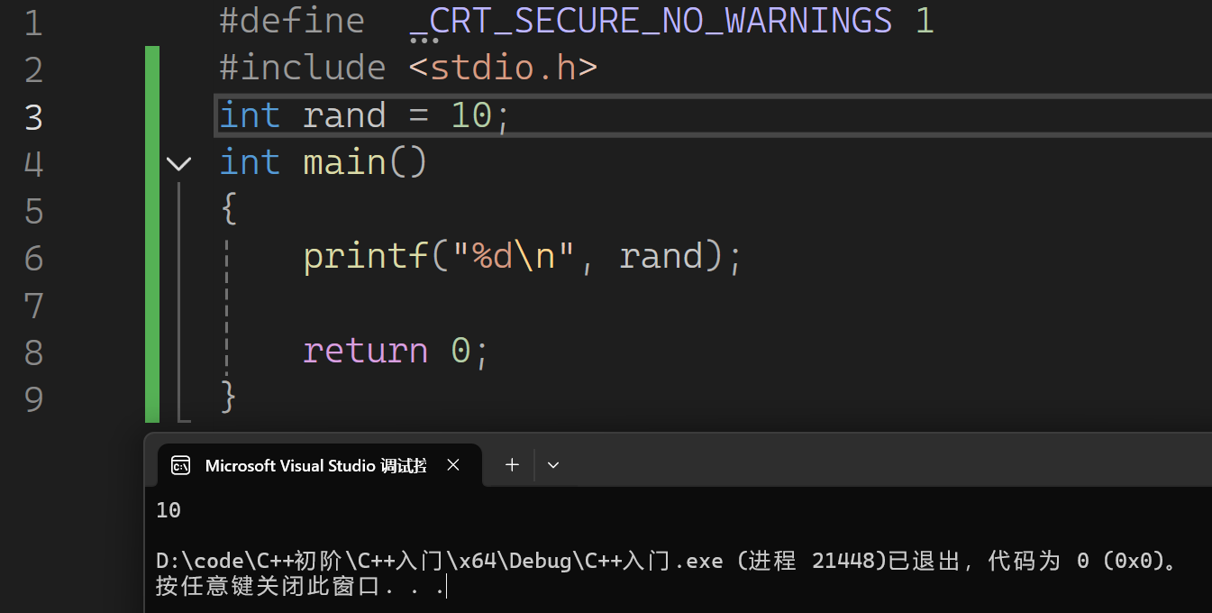 namespace本质上是定义出一个域,这个域和全局域各自独立,不同的域可以定义同名的变量,所以下面代码中的rand就不存在冲突了。