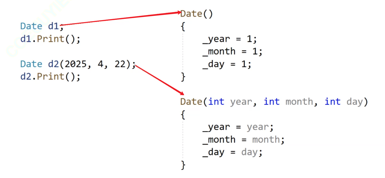 构造函数是特殊的成员函数,用来对象实例化时初始化对象。构造函数的本质是要替代我们以前写的Stack和Date类中的Init函数的功能,构造函数自动调用的特点就完美地替代了Init函数。