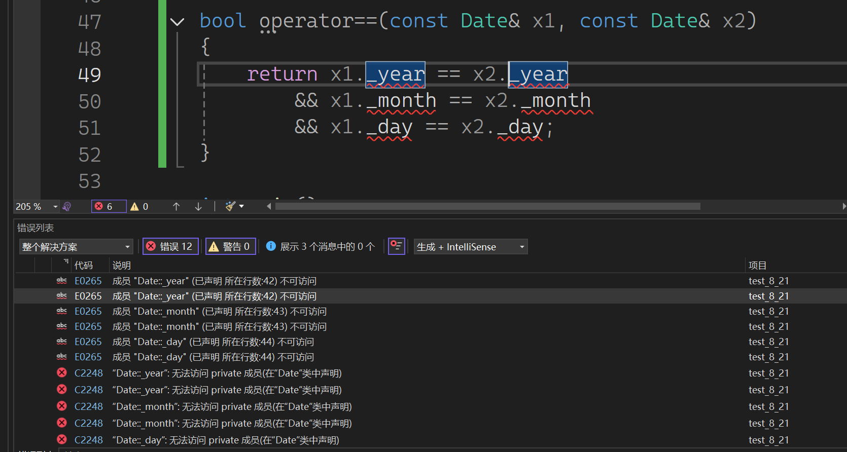 但是这样就带来一个问题,_year、_month和_day都是私有成员变量,没法直接访问。